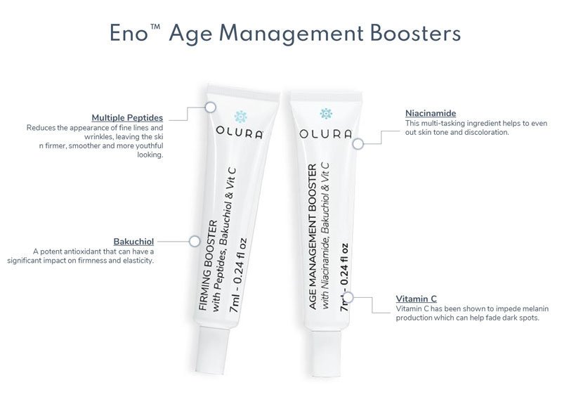 Treatment Serum:A light serum that’s powered by Niacinamide (B3) and a blend of peptides to improve skin tone; soften lines and diminish dullness while supporting the skin barrier. The perfect base for the addition of your two chosen concentrated Treatment Boosters. Formulated with particle sizes 10 to 50 times smaller than traditional products make it perfect for infusion with the Eno.