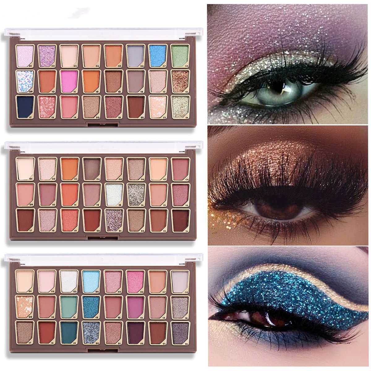 3.The rainbow - inspired hues and finishes, ranging from sheer - color, high - shine glitter topcoats, to entrancing ultra-reflective metallics and rich shades with intense pigment payoff deliver striking impact and light-catching dimension, Suitable for both makeup beginners and makeup pros.