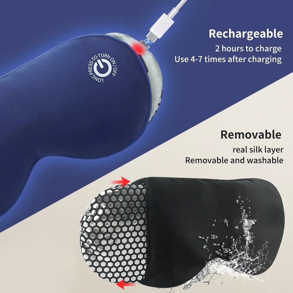 New Cordless Heated Eye Mask for Dry Eyes USB Rechargeable Warming Therapy Graphene Heating Reusable Real Silk Sleep Eye Mask