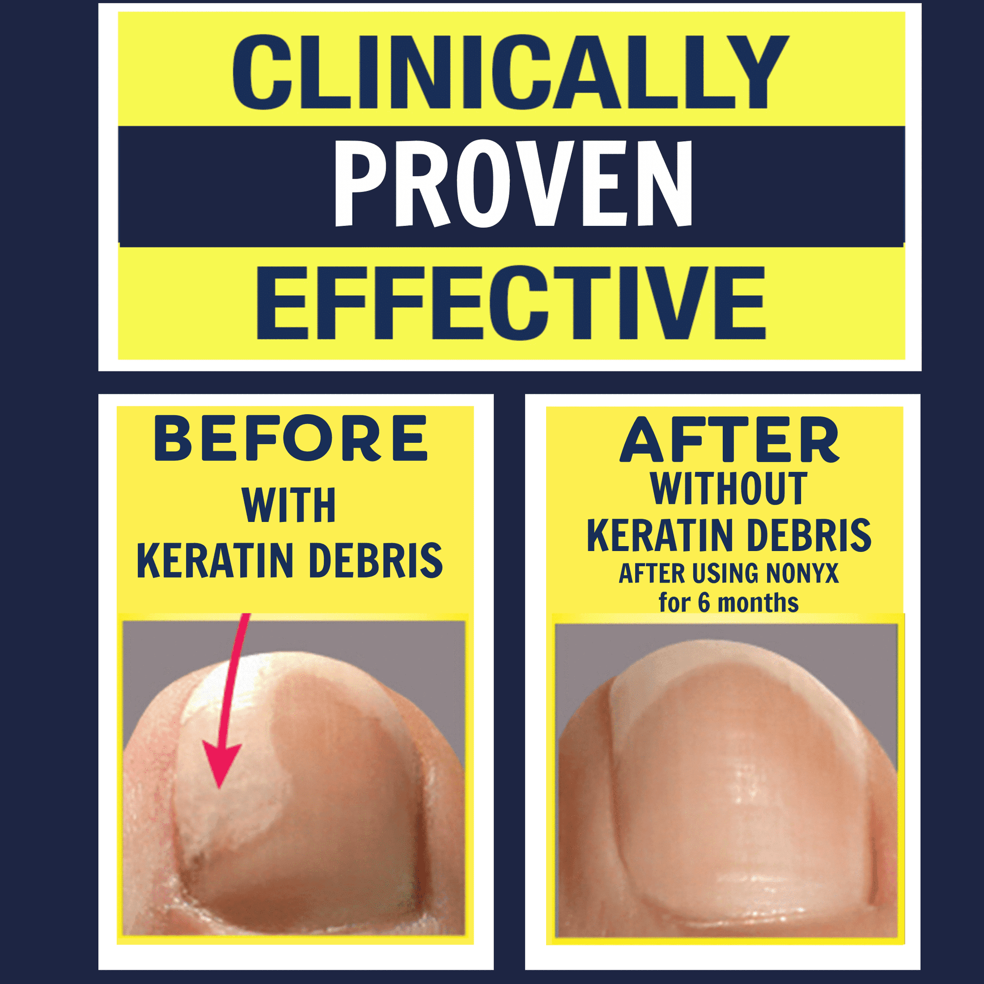 Nonyx Fungal Nail Clarifying Gel clears out fungus by removing keratin debris where nail fungus grows. Unlike other toenail fungus treatments, Nonyx works by targeting the food supply of nail fungus. This food is keratin debris. Once keratin debris is gone (and nail fungus with it), nails look clear and healthy again. In fact, Nonyx is clinically proven effective in a 9-month study where 90% of nail appearance significantly improved. Nonyx is an effective nail solution for damaged and discolored fingernails and toenails and clears nails that are yellow, thick, dark, brittle, or lifting. Nonyx has been a leader in nail care since 2006. The formulation (ingredients are Deionized water; ethanoic acid; xanthan gum; fragrance) is vegan, not tested on animals, is free of animal byproducts, parabens & preservatives.