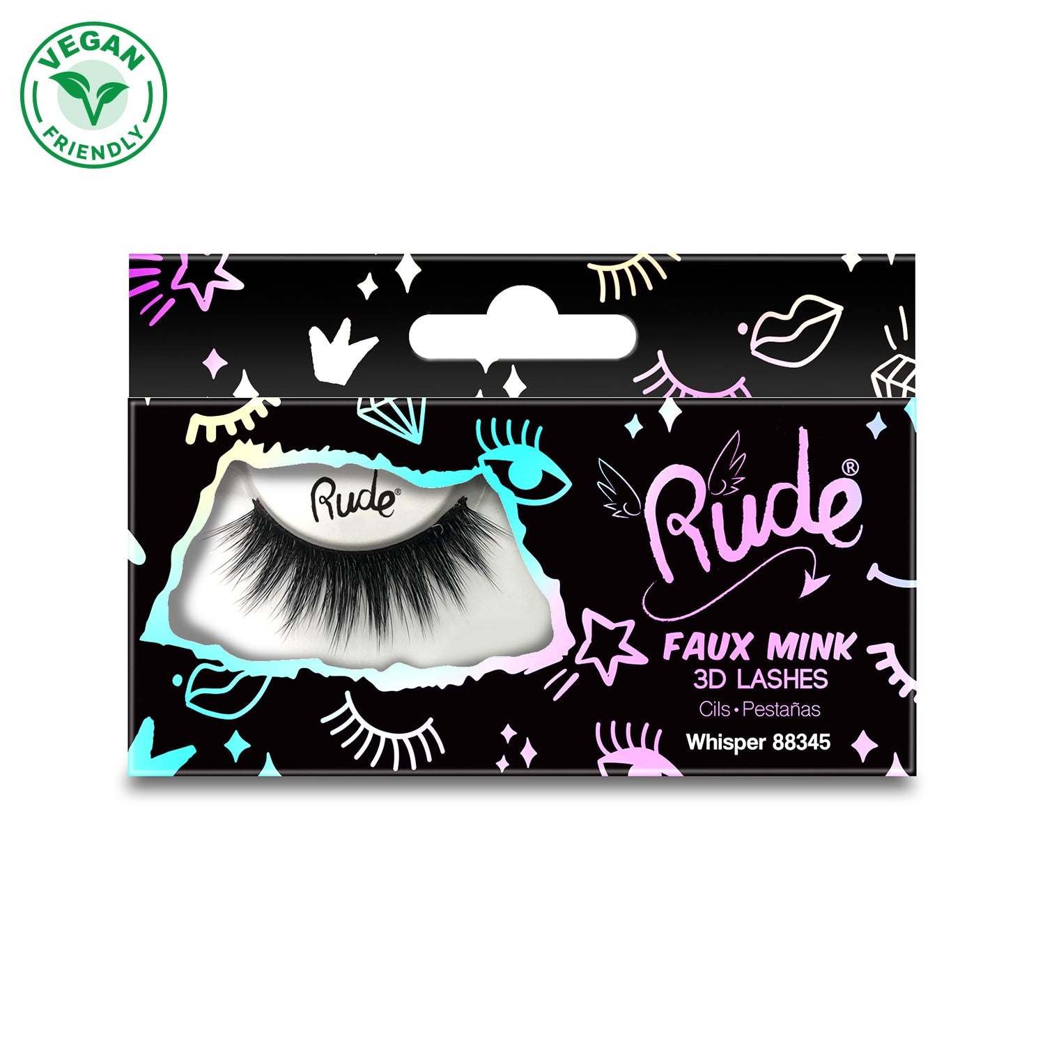Glam up your everyday look with Rude Faux Mink 3D Lashes. Our full and fluffy Faux Mink lashes create a flirty, romantic makeup look. Translucent band for seamlessly blended lashes.Cruelty Free | VeganHow To Use1) Carefully peel the lashes from the outer edges with tweezers.�2) Hold false lashes up against your lash line and trim if necessary to fit desired length and width.�3) Apply a moderate amount of glue along the false lash root and let the glue dry for a couple of seconds.�4) Use tweezers to put the lashes in place with and lightly press them onto your lash line.�