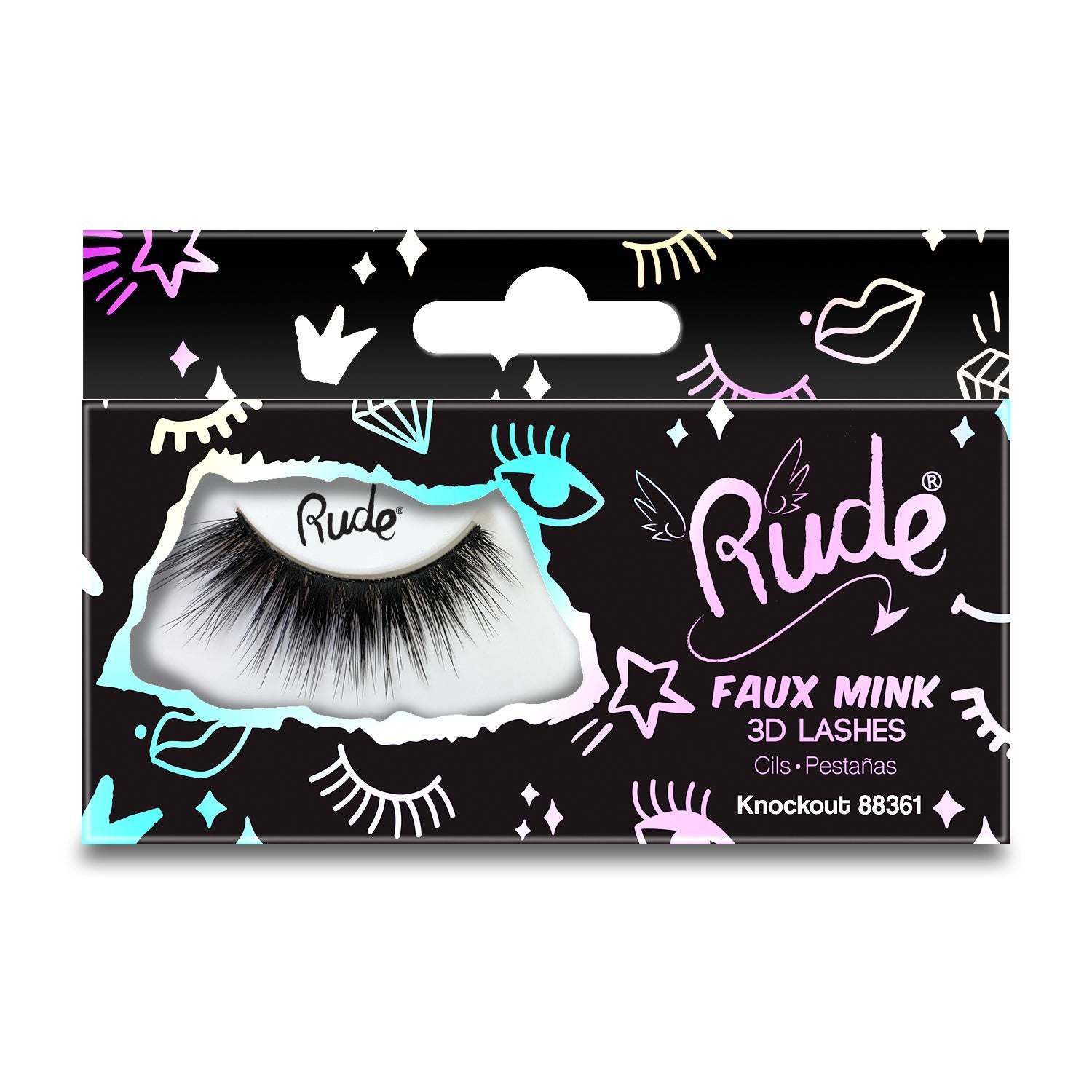 Glam up your everyday look with Rude Faux Mink 3D Lashes. Our full and fluffy Faux Mink lashes create a flirty, romantic makeup look. Translucent band for seamlessly blended lashes.Cruelty Free | VeganHow To Use1) Carefully peel the lashes from the outer edges with tweezers.�2) Hold false lashes up against your lash line and trim if necessary to fit desired length and width.�3) Apply a moderate amount of glue along the false lash root and let the glue dry for a couple of seconds.�4) Use tweezers to put the lashes in place with and lightly press them onto your lash line.�